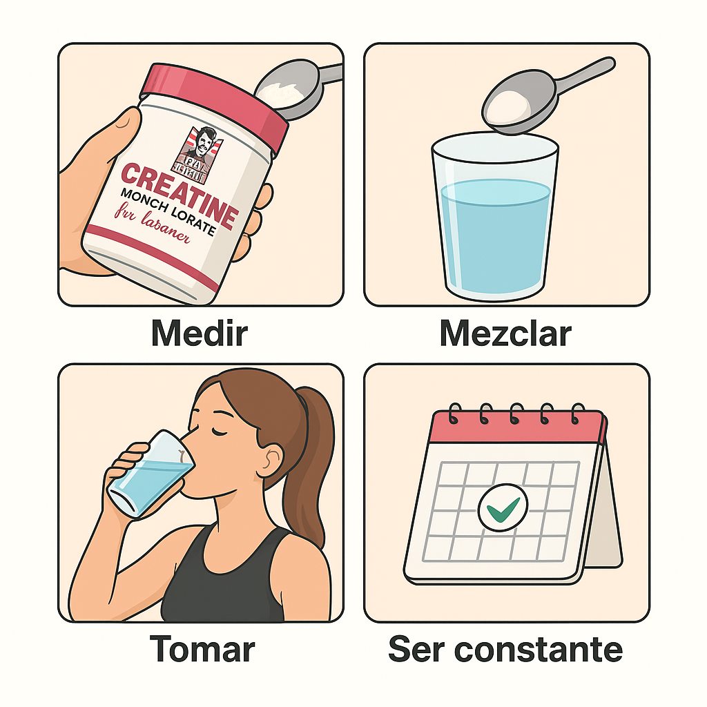 Medir: Toma 1 scoop (5 g) de creatina monohidratada, la dosis estándar recomendada.